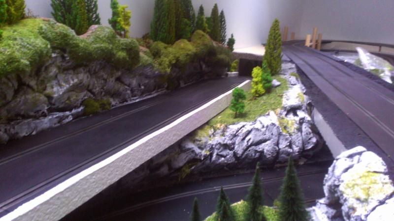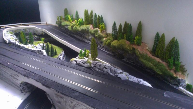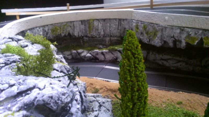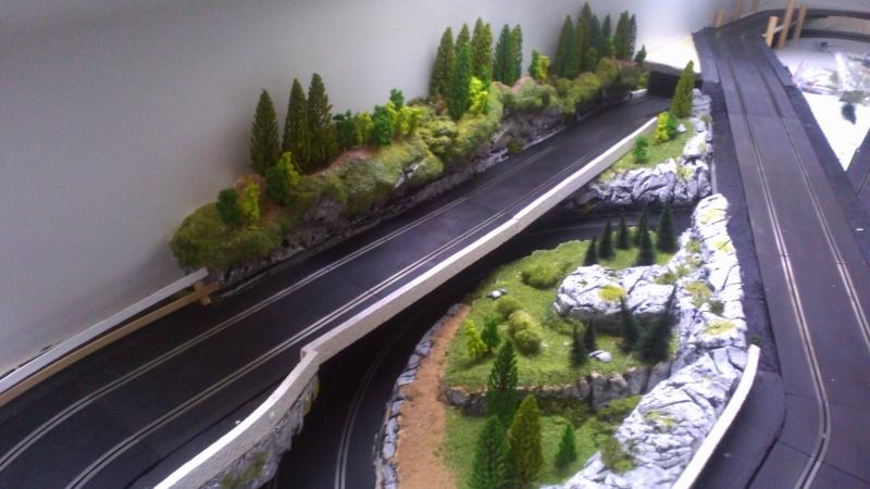 Ben voilà ..c'est pas mal du tout ..un peu de finition et ce sera top !...par contre prévoit un peu de dégagement par rapport à la piste pour pas que tes voitures grignotent le décor quand elles vont déraper ..