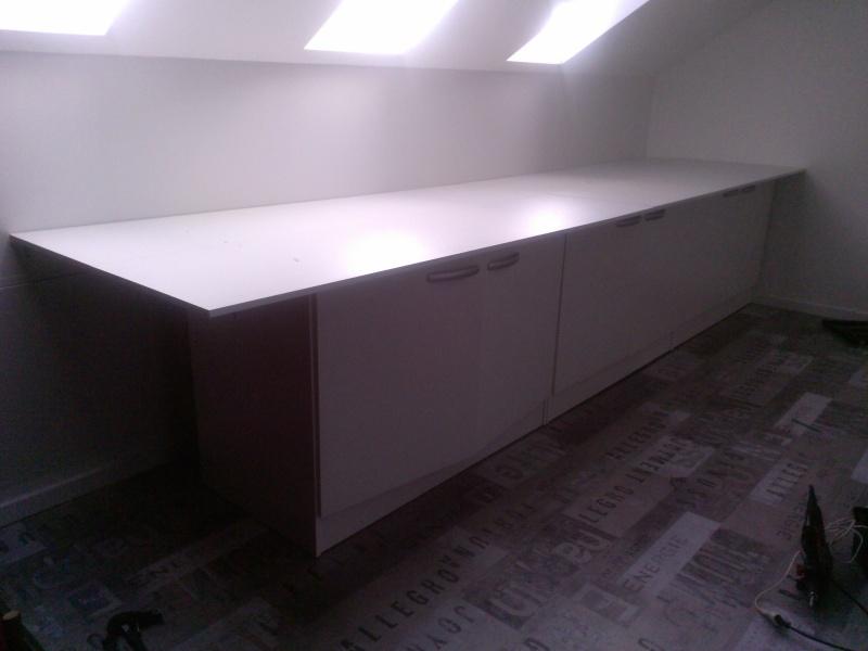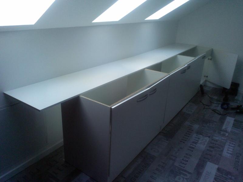 voila , on met dessus des plaques de melaminé et on fixe bien les meubles entre eux ,au sol et au mur .