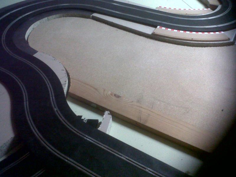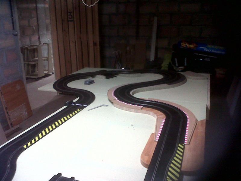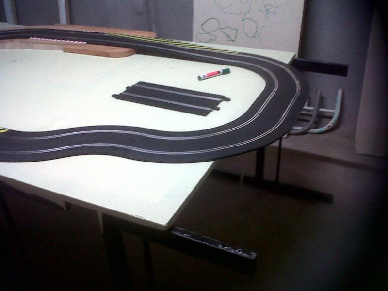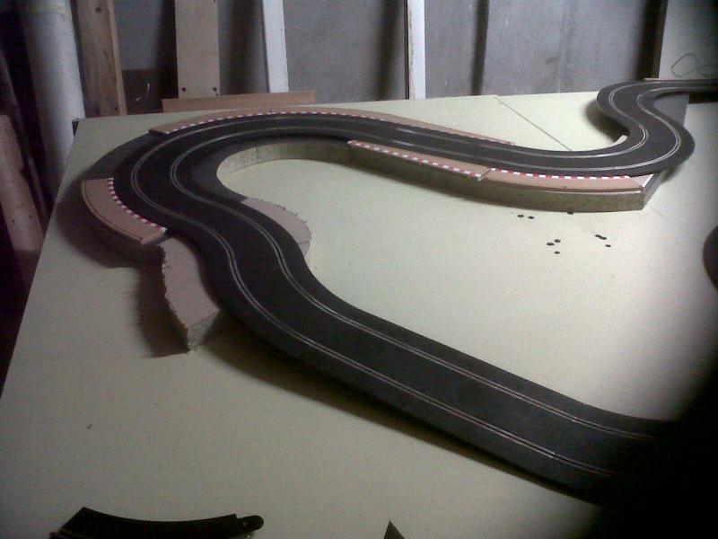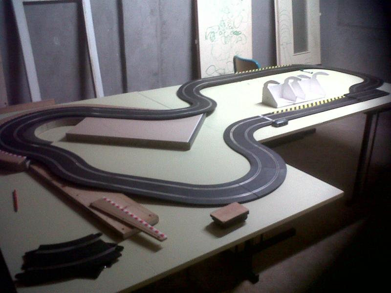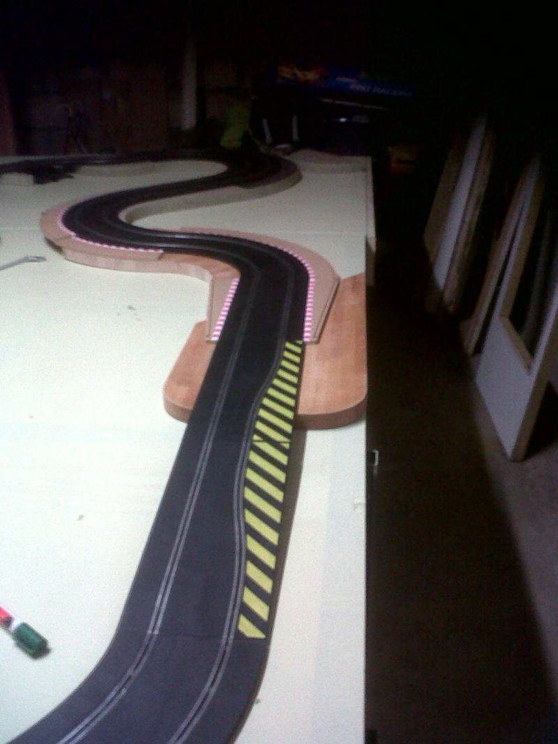 CELA FAIT UNE LONGUEUR DE 220 ET JE PENSE QUE JE VAIS LE RALLONGER EN BOUT DE PISTE AFIN D'OBTENIR UNE LIGNE DROITE ASSEZ LONGUE POUR POUVOIR POUSSER LES VOITURES A FOND UN COURT INSTANT