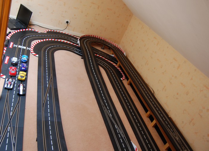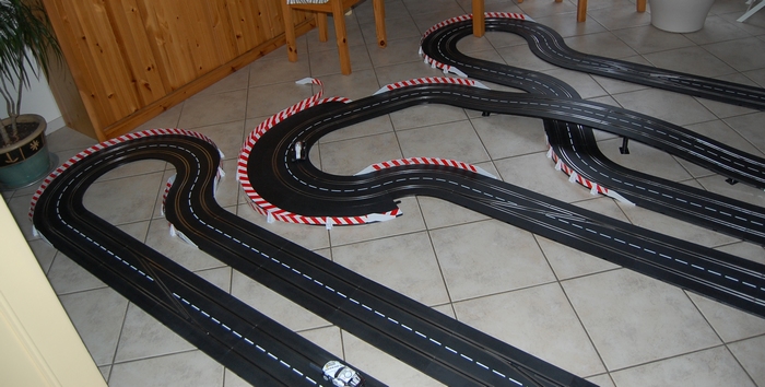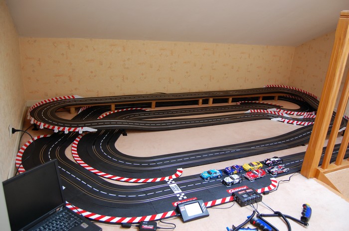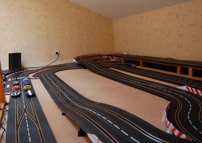 Tu commences par monter une toute petite piste sur un plateau en prétextant un mal de dos récurant... Un jour tu agrandis un tout petit peu "comme ca le tracé est plus fun, moins fouillis"... Un peu plus tard (genre 3 mois) tu agrandis encore un peu... Parce " les courbes sont lassantes et faire des 180 degré tout le temps c'est pas terrible"