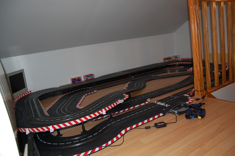 Tu commences par monter une toute petite piste sur un plateau en prétextant un mal de dos récurant... Un jour tu agrandis un tout petit peu "comme ca le tracé est plus fun, moins fouillis"... Un peu plus tard (genre 3 mois) tu agrandis encore un peu... Parce " les courbes sont lassantes et faire des 180 degré tout le temps c'est pas terrible"