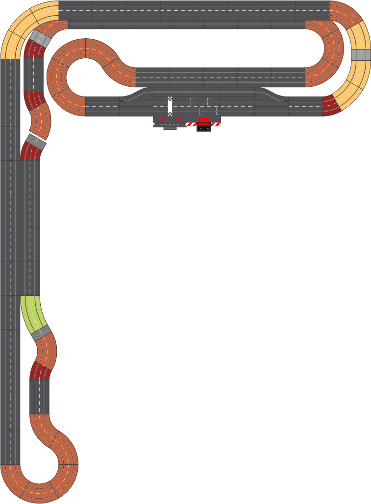 et pourtant elle a pas changé de place ! Le 1/30 rajoute une "variété" au circuit très sympa. Ca fait plus uniquement des droites paralèles avec les plus de pistes possibles. Tu arrives à combien en développé maintenant ?