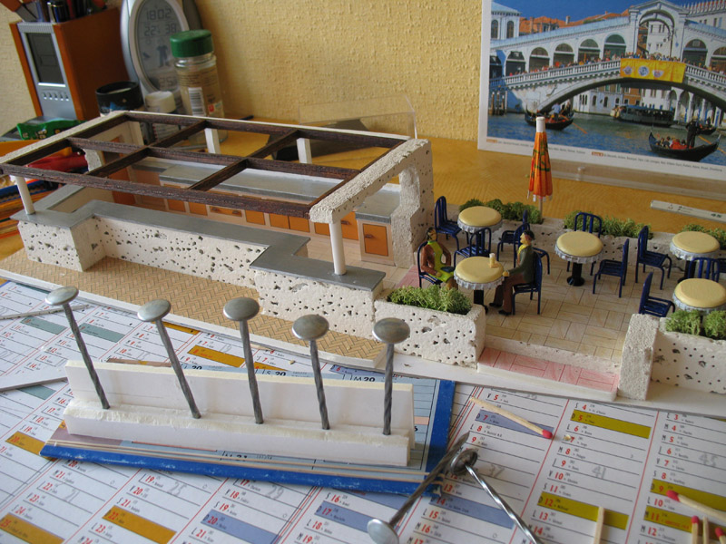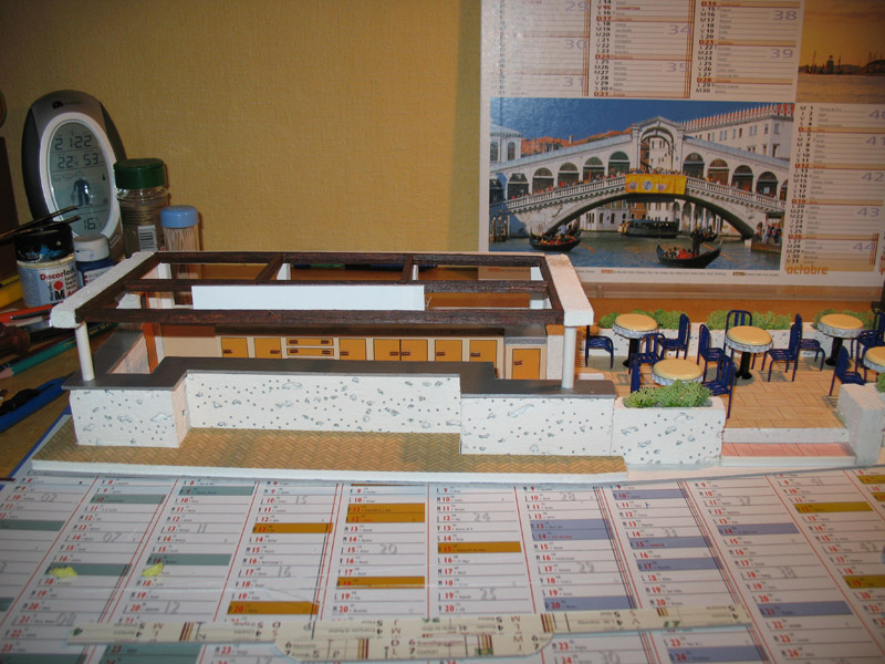 bon, j'ai mit les poteaux (en bois, ça n'allait pas et là en blanc ça va mieux)