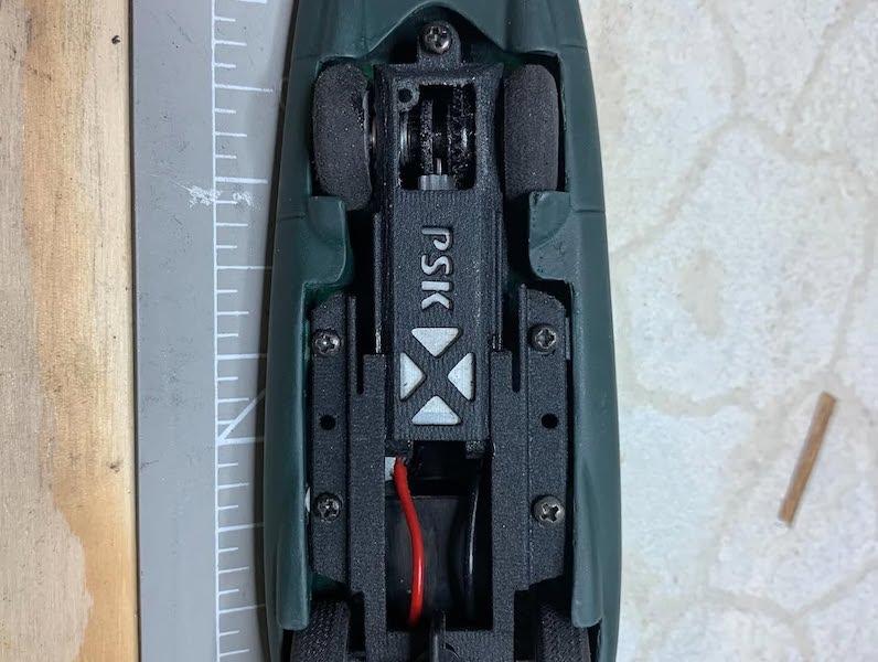 Ultra simple , très peu de pièces mais il faut bien se creuser la cervelle pour que tout passe et tourne librement dessous car on ne peut pas trop entamer la résine sans risquer de passer au travers .... J'ai donc enlevé en plus beaucoup de matière sur les jantes arrières et poncé les pneus .