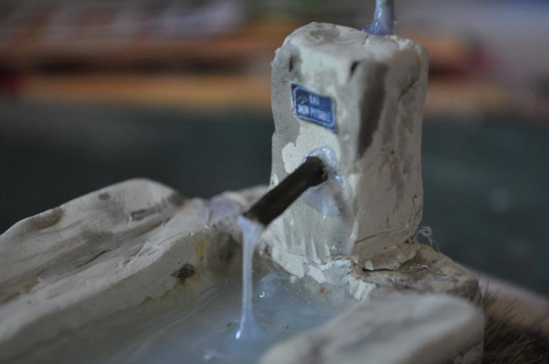 et lorsque j'ai la quantité que je veux je le colle à la fontaine