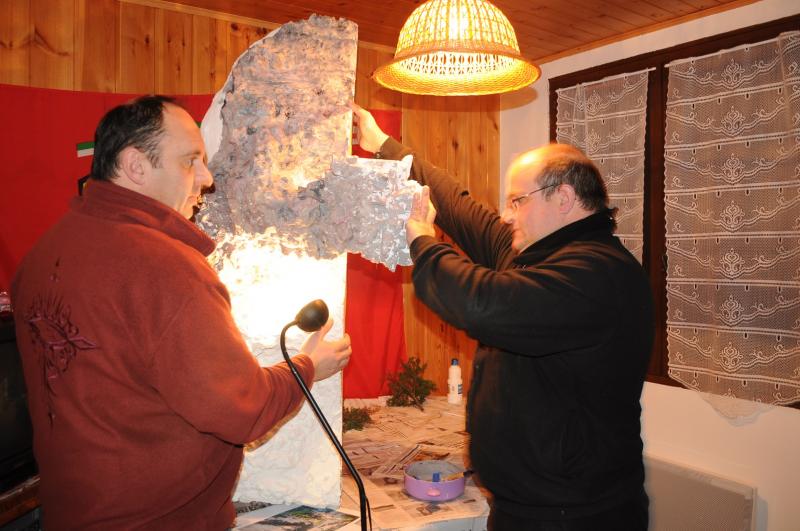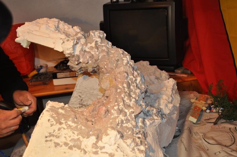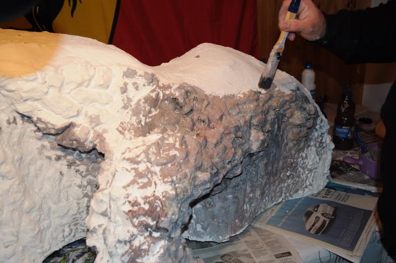 Le volume autour de la grande falaise est terminé et la pose de l'enduit a été réalisé