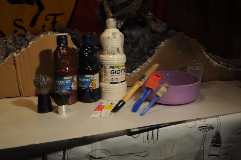 Tout ça a été fait avec ce matériel plutôt basique (de la simple gouache et des pinceaux mousse, brosse et blaireau).
