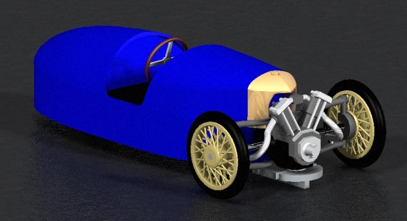 Bonjour, je profite d'un peu de temps libre pour avancer sur la modélisation de la Morgan de course : châssis rabaissé, nouvelle carrosserie en cours de modélisation, pipes d'échappement modifiées, calandre modifiée pour se "caler" sur le modèle retenue