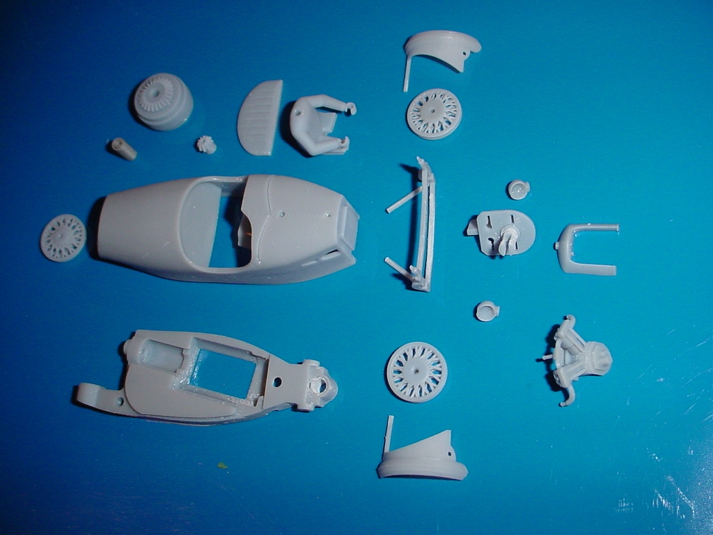 Toutes les pièces ont été imprimées en résine (translucide pour les deux optiques des phares). Le pare-brise est découpé dans un chute de blister, à partir d'un gabarit dessiné en CAO.