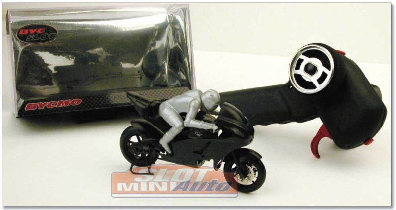 Bycmo , fabricant de Rc Espagnol nous sort une moto de slot qui prends de l'angle en virage grâce a sa poignée télécommandé ( a confirmer)