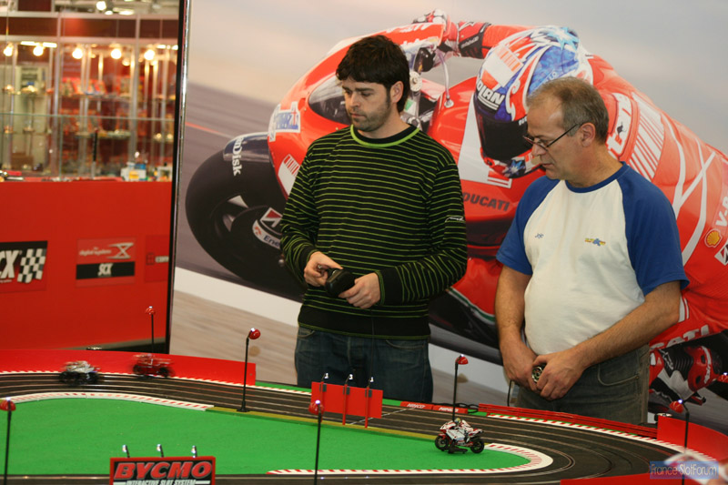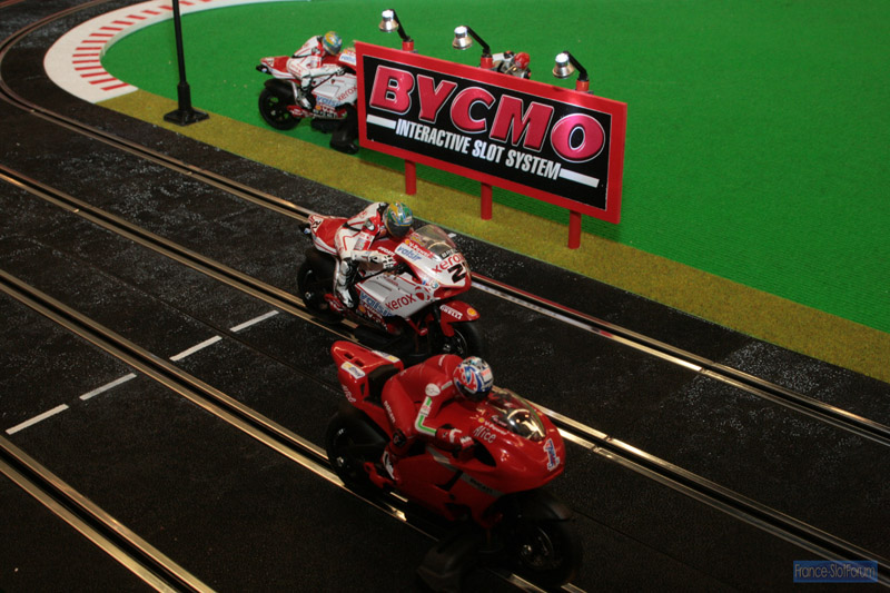 Autant le dire franchement, les motos Bycmo sont mon coup de coeur du salon! Une vrai nouveauté en ce qui concerne les motos en slot, un vrai intéret en terme de jeu et de fun, un vrai challenge au niveau pilotage (bon, on s'y fait vite mais quand même!)