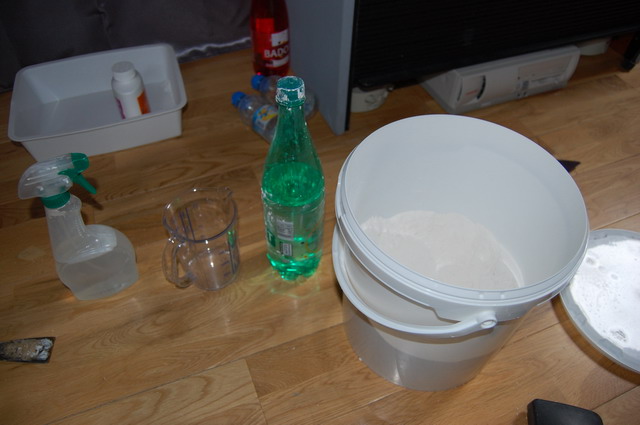 Il vous faut également un vapo d'eau avec quelques goutes de liquide vaisselles, un récipient avec bec verseur, de l'eau et du platre de moulage qu'on trouve dans n'importe quel magasin de bricolage