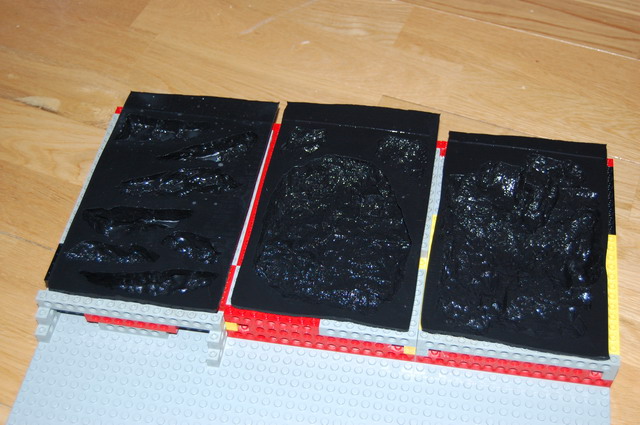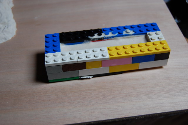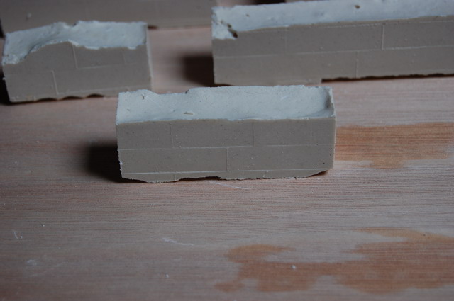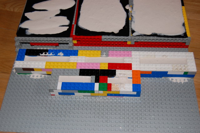 En préparant mes supports de moules en légo , j'ai eu l'idée d'utiliser les légo pour faire des moules de murs, après avoir construit les divers moules, en utilisant la même méthode on obtient cela
