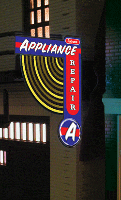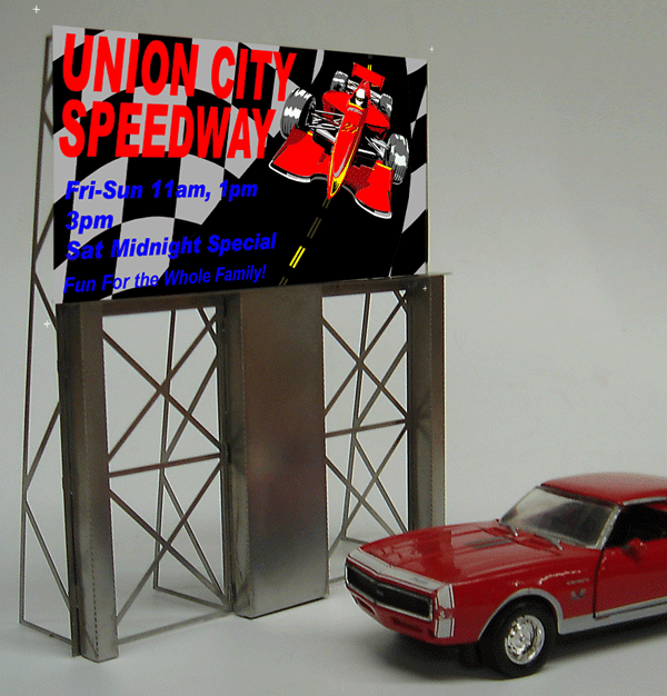 il s'agit de panneaux publicitaire lumineux et animé a l'echelle O (grand train de jardin) mais qui existe aussi au HO et N