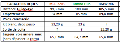 Pour terminer quelques caractéristiques sur cette 720 S...ideways comparées avec les 2 autres GT3 Sideways que sont la Lambo Huracan et la BMW M6
