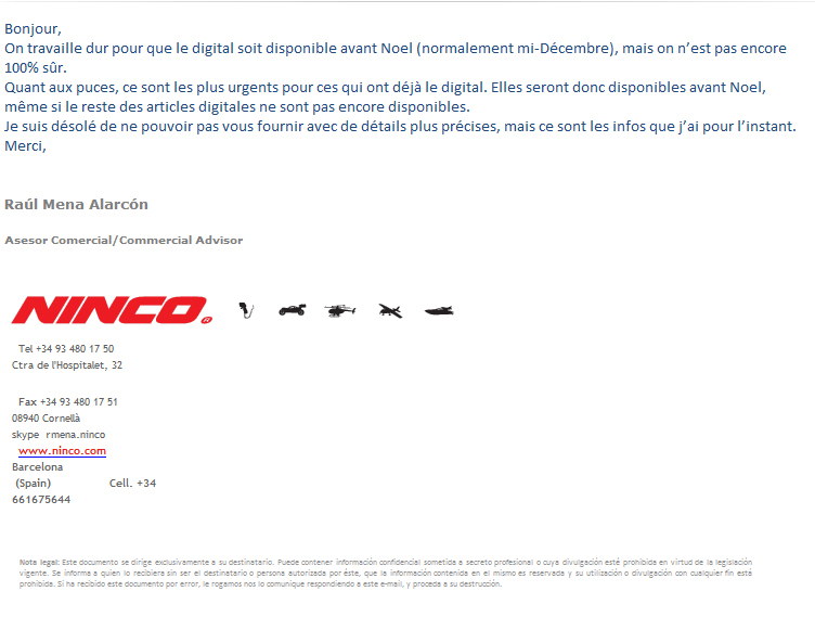 vu que les ventes sont en berne NINCO repousse le nouveau DIGITAL .