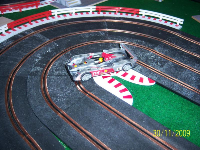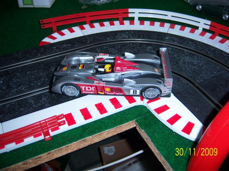 Celle-là, c'est pour dire qu'en effet il faut des bordures, mais surtout pour rappeler que sortie de boite, ma Carrera ne passait pas ce virage, son "rayon de braquage" était bridé par construction, raccourcir et rétrécir en largeur ne suffisait pas.