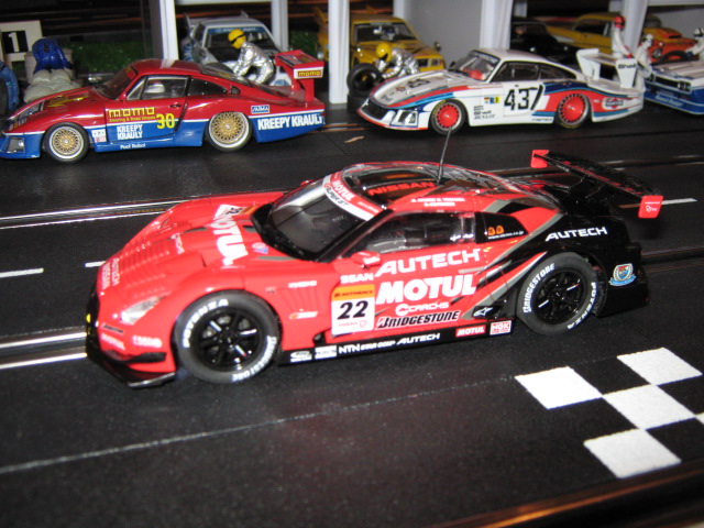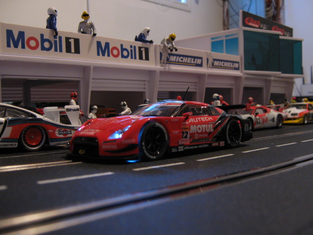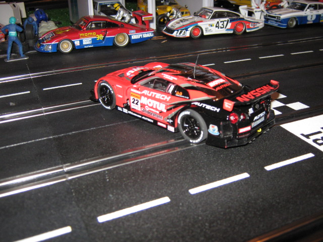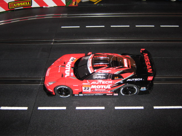 Voici une Nissan gtr 500 de Carrera.Bien différent que les modeles précédents.La plateforme n est pas pareil ,elle est plus légere.Ca tient vraiment a 18 volts sur la track.