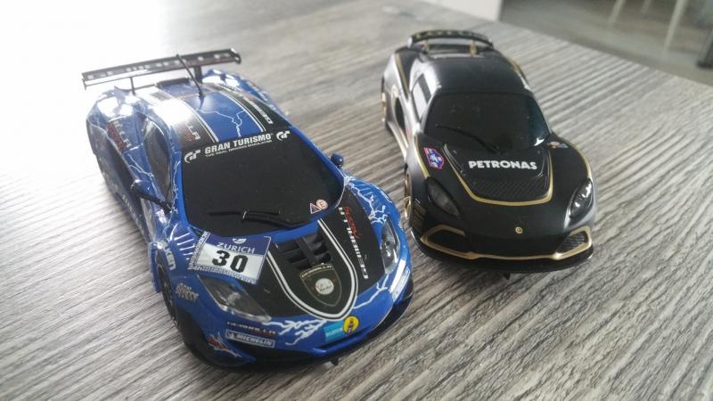 un melange de rail scalextric et ninco, les rails ninco ont un petit bout de plastique de chaque côté à l'intérieur du slot ce qui a pour effet de freiner la voiture, et quand on ralentit trop impossible de repartir sans donner un petit coup de pouce avec la main, mais je vais voir pour trouver une solution pas trop galere pour l'enlever. Si quelqu'un a déjà fait ou déjà vu faire je suis preneur :)