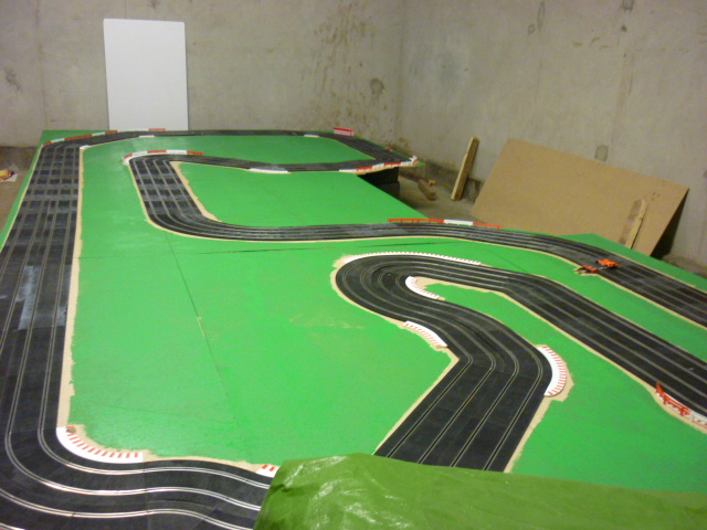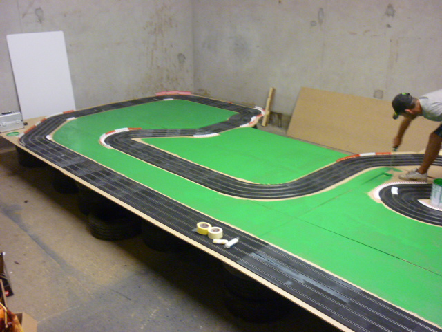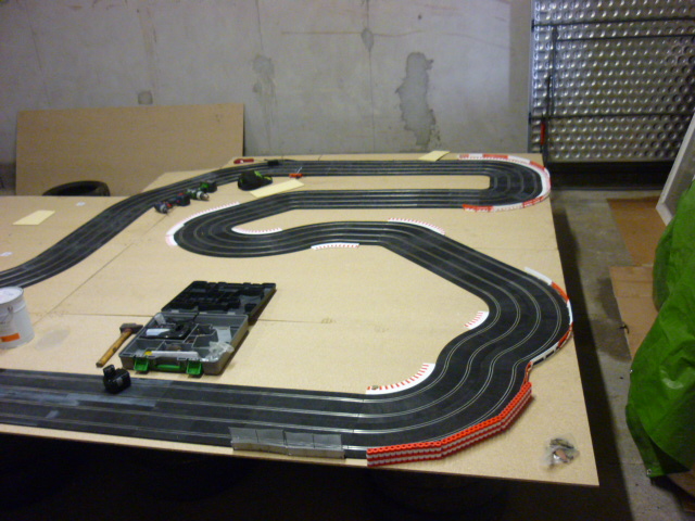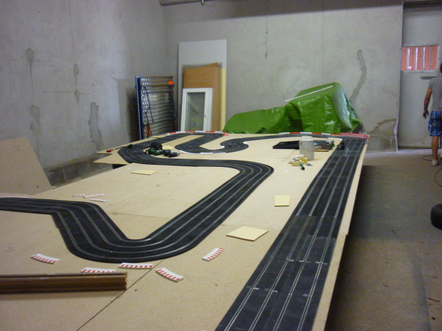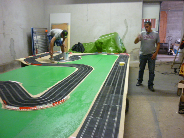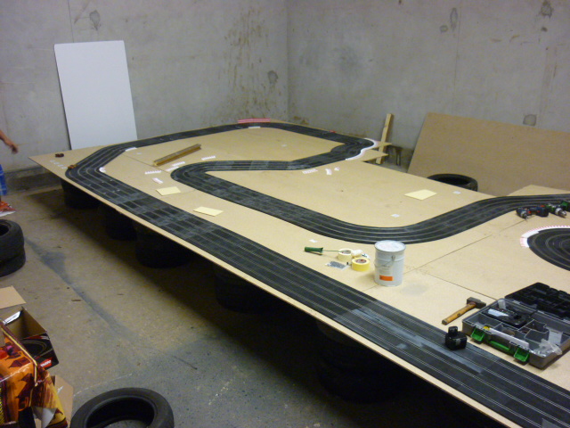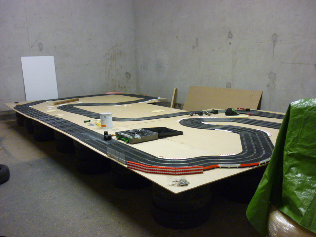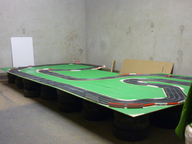 Bonne idée que de mettre le plateau sur des piles de pneus, effet silent-block = piste silencieuse. A retenir.