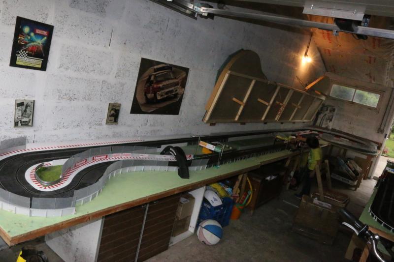 Le Carrera se rabat au mur, opérationnel en 5mn, pour pouvoir utiliser le Ninco qui est en-dessous et dont une partie est aussi rabattable