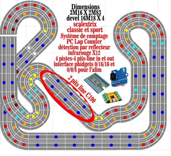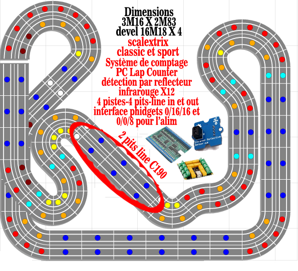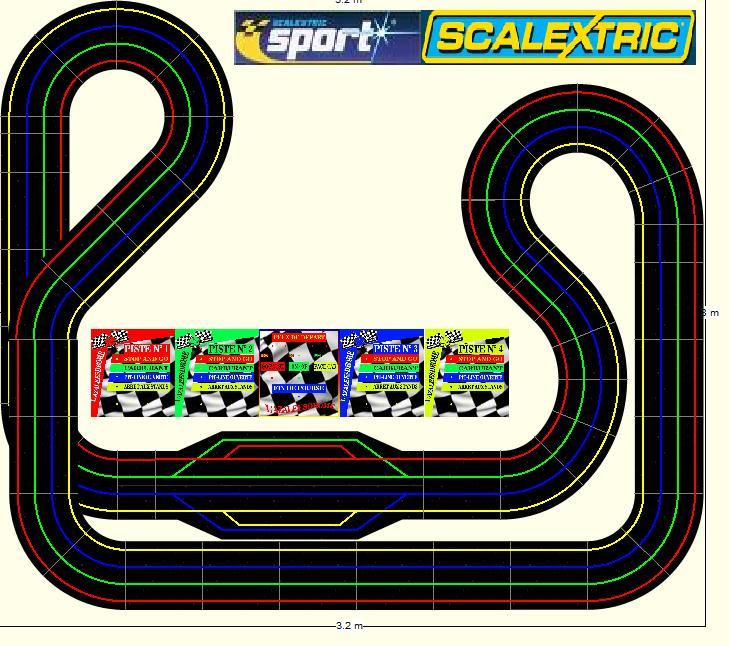 c'est pour l'instant qu'une ébauche de circuit, je sais pertinemment que la place dédiée pour un 4 pistes est juste. Mais je tiens au 4 lignes, nombreux à la maison, enfants, copains d'enfants, frère et copains. je précise ils ne vivent pas tous à la maison.