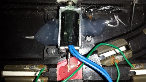Bon j'ai attaqué les pits-line pour l'électrification des aiguillages. voici les différentes phases de l'opération.Pour cela j'ai opté pour des mini électro-aimants.