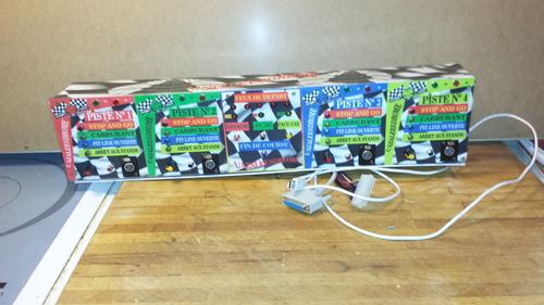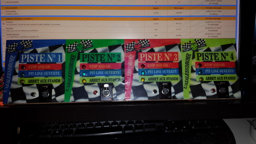 voici une photo de mon poste de commande pour commander Pc Lap counter où j'ai inséré le phidgets 0/16/16. Le tout mis dans un seau de vis