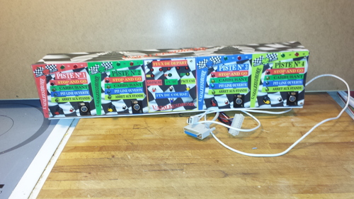Après avoir fait quelques emplettes sur le net, interface Phidgets etc. je vais commencer à mettre en œuvre ce projet. Et pour commencer les détections par réflecteurs infrarouge, ils seront 12 en totalité, 4 pour compter les tours et 8 pour les pits-line (4 in et 4 out).
