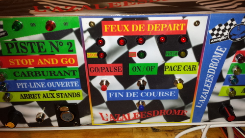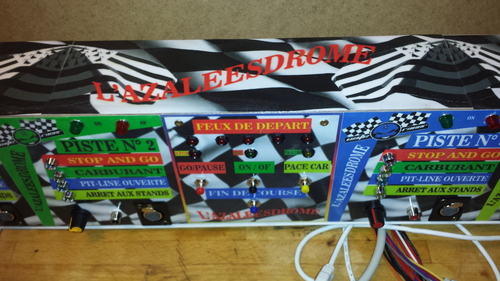 j'ai fabriqué un mini plateau pour recevoir les pits-lane 1m20x0.70m fixées sur celui-ci.