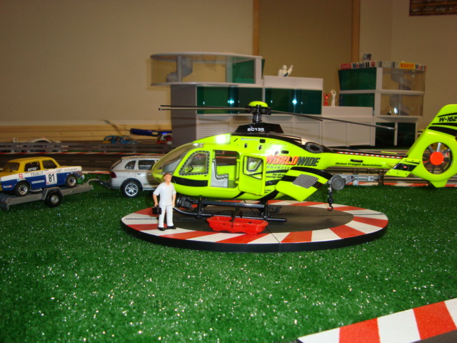 L'hélico c'est prévu mais je pense accroché au plafond par un fil de nylon transparent, je pense que ça fera plus "vivant" et surtout comme c'est assez difficile d'en trouver en 1/32 , au moins en hauteur si c'est du 1/43 ça se verra moins