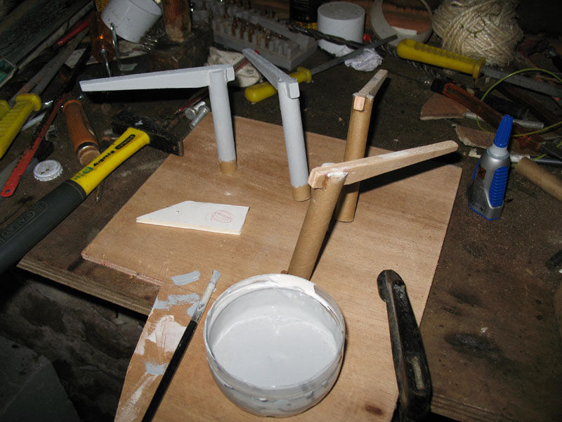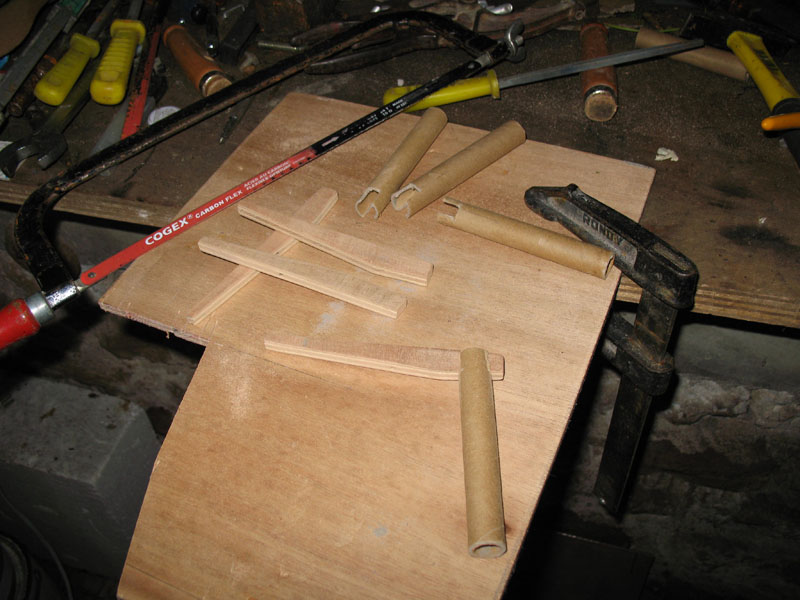 découpe des poutres (en contreplaqué) et des piliers........