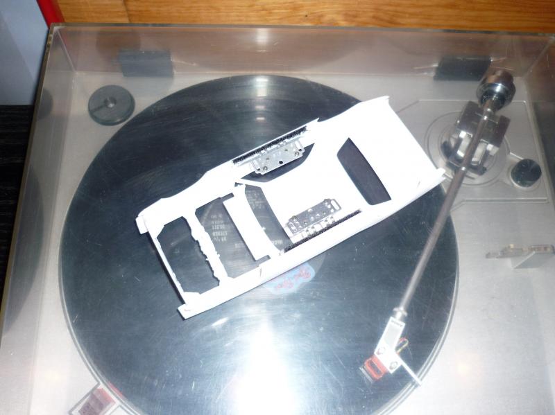 L'intérieur et le moteur assemblé sur le chassis (montage à blanc)