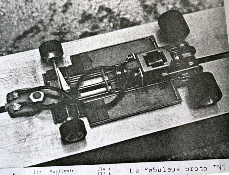 Voilà en premier le chassis TNT F1 (je pense le premier avec moteur flottant dans le chassis pour éviter les effets néfastes des accélérations)