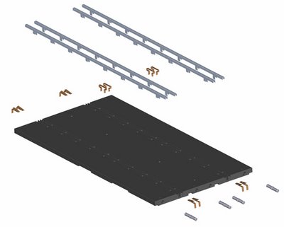La surface sera granuleuse et l'espacement entre slot de 10 cm. Système de connection entre rails type piste "bois"