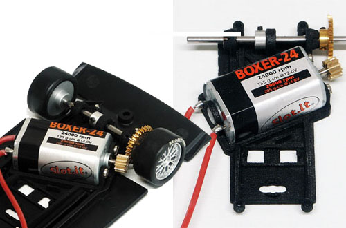 qui dit petite couronne dit petites roues, axe bas, comme en slot 1/24...et centre de gravité très proche du rail...