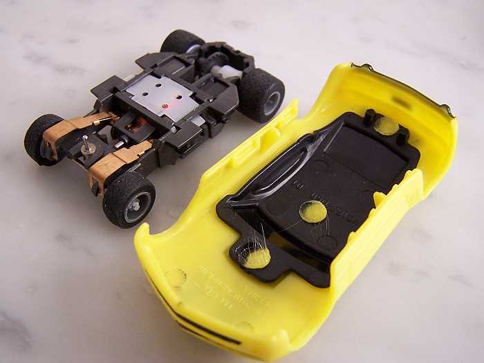Le vitrage est rapporté mais plus volumineux qu'avant. Les moulages de fixation carrosserie ont changé . La carro tient mieux sur le chassis HPX2 mais la Mustang se monte mal sur un HP7 !