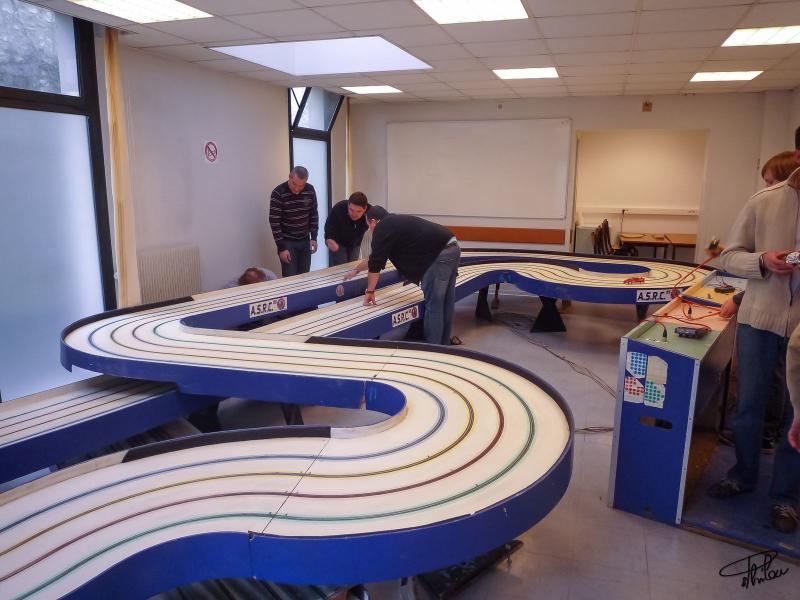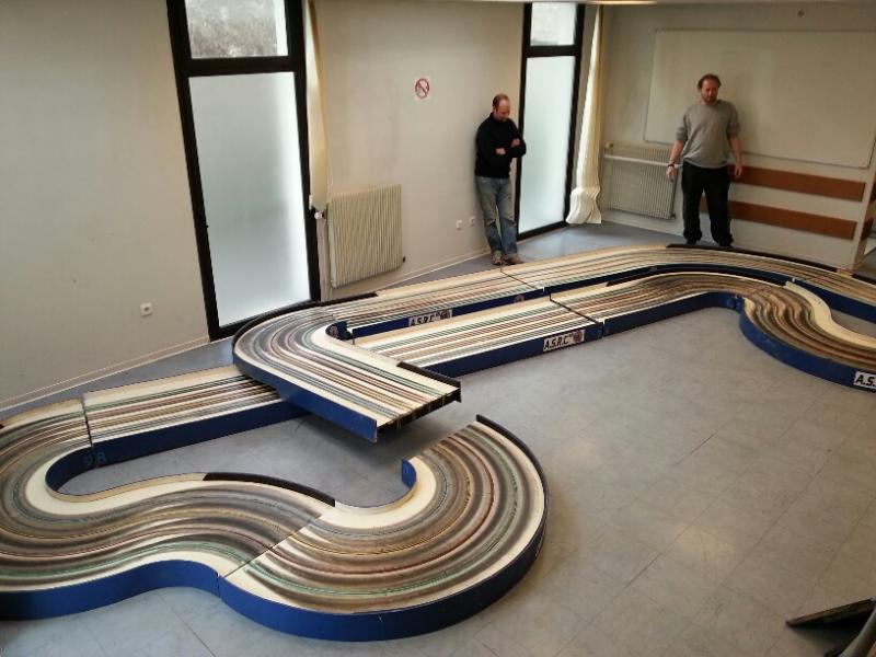 apres deux heures d'effort rapatriement de la grande piste et montage à blanc avec perte de deux lignes droite pour cause de manque de place (pas encore sur )!!!