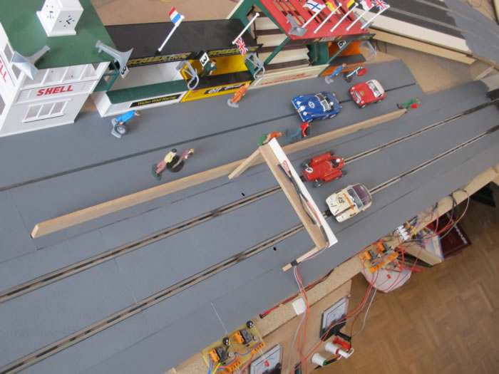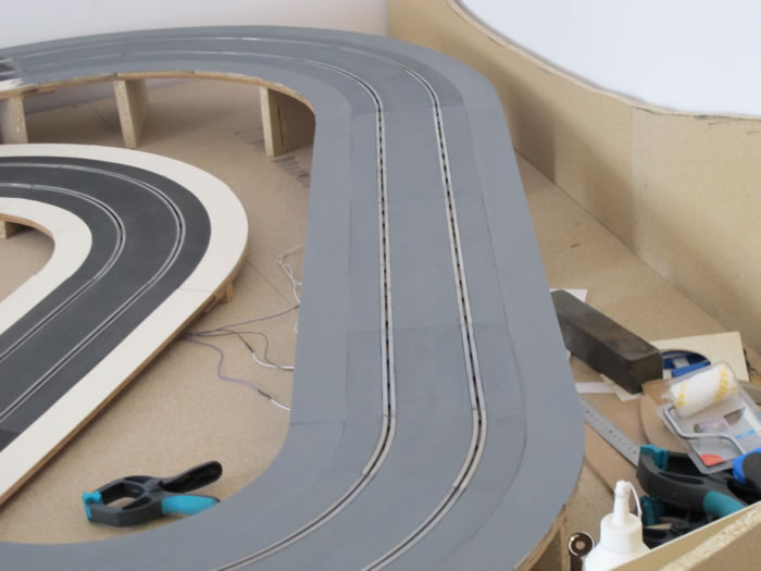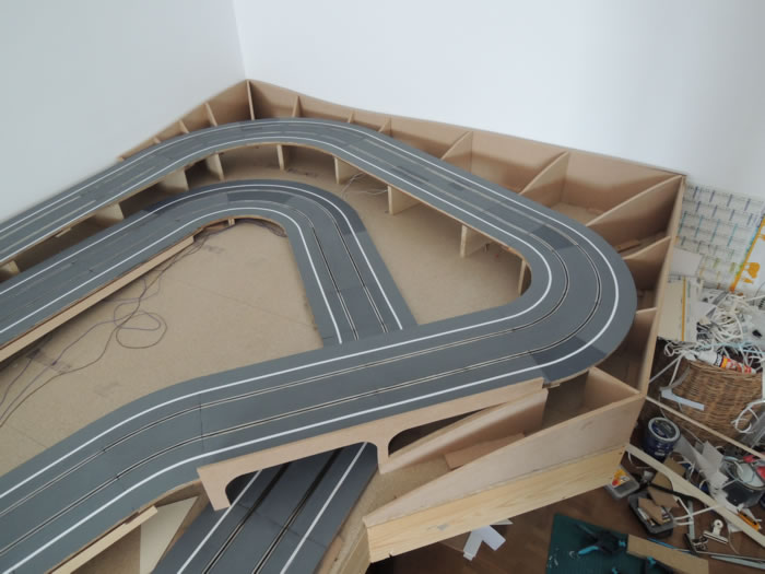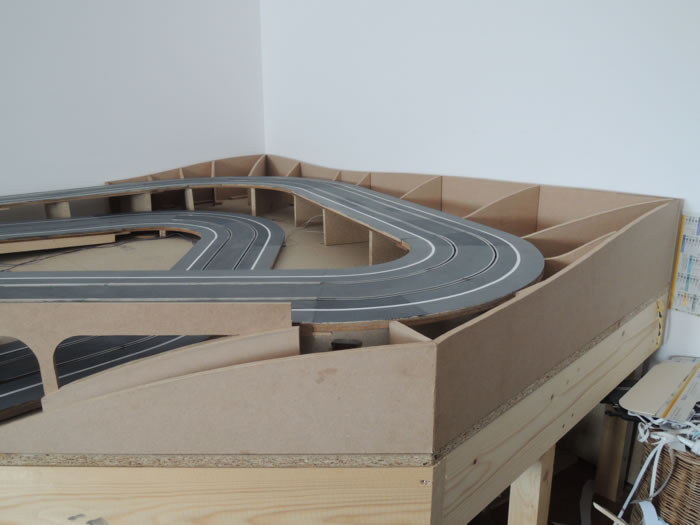 PS : Je suis un peu surpris par ton pilier de pont mordant sur la piste, chez moi, c'est logique car j'ai tellement voulu optimiser l'espace que cela finit comme ça à un ou deux endroits, mais il me semblait que tu avais la place de ne pas en arriver là...