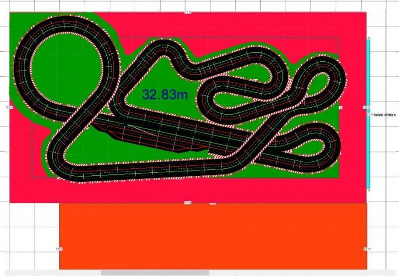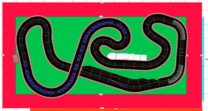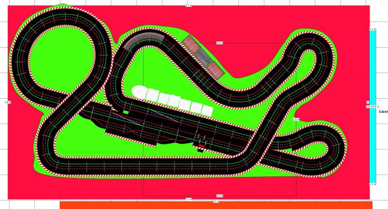 La pièce fait 7,1m sur 3.8m et donc le plateau de 6,1sur 2,8m avec en plus la possibilité que pp+ vient de proposer, ca donne d'autres perspectives, le coin en haut à gauche. Même si je ne sais pas si une boucle de ce type est agréable á la conduite. On peut aussi déborder de quelques centimètres sur les bords et plus sur le bas