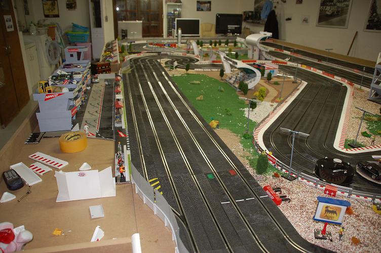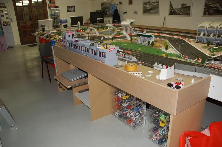 IL N'EST PAS PLUS LONG JUSTE UN DEPLACEMENT DES STAND AVEC DEPLACEMENT DU PIT LANE ET ALONGEMENT POUR UNE VISIBILITE TOTAL DE TOUTES LA PISTE , EN PREVISION DE L'ARRIVEE PROCHE DU DAVIC , LES POSTES DE PILOTAGES SERONT DU COTE DROIT ET MURS DU FOND SOIT 8 PILOTES MODIFICATIONS DU VIRAGES AVANT LIGNES DROITE AVEC MISE EN PLACE DE MURET CE QUI EVITE DE TAPER ET MODIFICATIONS DU VIRAGES APRES COMPTAGE SUITE A DEPLACEMENT ,POUR MISE EN PLACE DE VIBREURS QUI PERMETTRONT UN PASSAGE PLUS RAPIDE POUR LES VOITURES AVEC UN GRAND DERRIERE!!!! ET REALISATION DU MEUBLE POUR LE PC ET TOUS LE BAZARRE ASRC 95 - Association Slot Racing Champagne sur oise 95 Auteur Message gandalf Lord of the ring