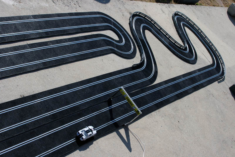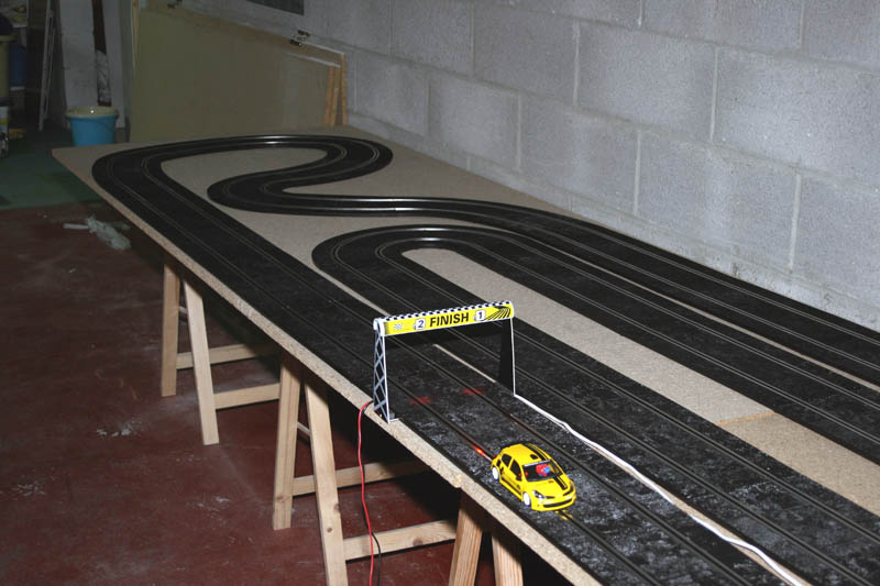 L'idée me trotait dans la tête depuis un moment, et j'ai craqué la semaine dernière! Je me suis dis que les tests sur ma piste bois, c'était déjà bien, mais que pour les sloteurs roulant sur plastique, ben... ce n'était pas très parlant! Et ne parlons pas de ceux qui roulent avec aimant!