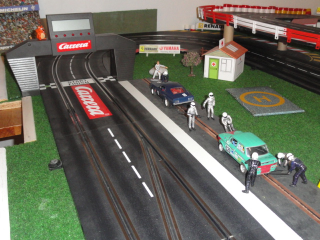 sinon je mettais fait faire par Paul gage (un fabricant de pneu urethane au canada) des paires de pneu en urethane pour ces voitures, avec ceux ci , ca roule beaucoup mieux, moins de glissade, ensuite je baissais aussi l'alim de la piste vers 11v de memoire car je trouvais le moteur de ces voitures trop puissant pour l'auto