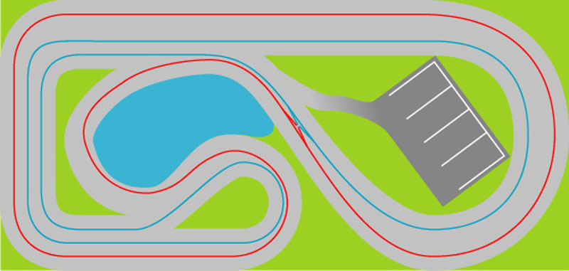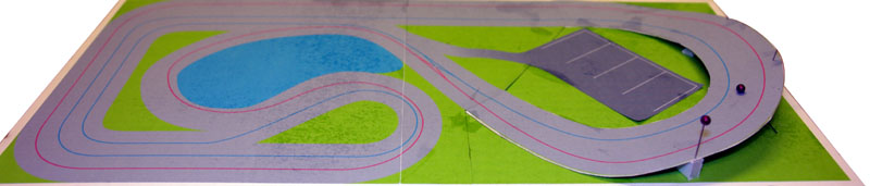 -position a, les deux pistes sont indépendantes, c’est le cas pour deux sloteurs et là la différence de tracé permet d’avoir deux pistes de même taille (à vérifier et éventuellement à modifier au traçage)