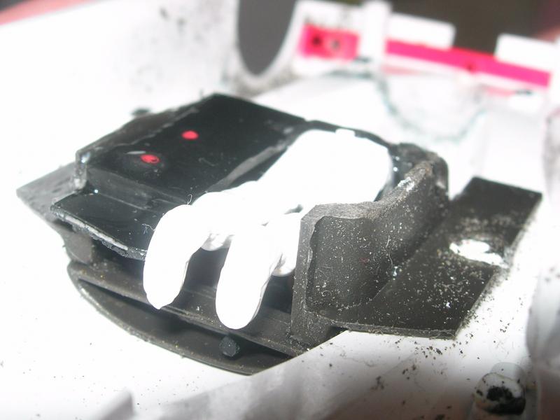 Ma puce je l'ai placé sous l'habitable et c'est pour cela que je réduis sa hauteur d'un bon centimètre. Après avoir coupé tout le bas de l'habitable, je récupère le plancher de celui-ci, je le retaille (pour pouvoir mieux l'adapter) et je le colle à côté du pilote pour boucher le trou. Le pilote est collé avec le reste du siège sur la partie arrière de l'habitacle.