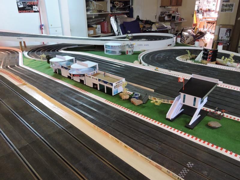 J'ai rallongé les lignes droites des stands de 40 cm chacune, bien sur il fallait aussi modifier la voie d'a coté, donc changement du virage ,