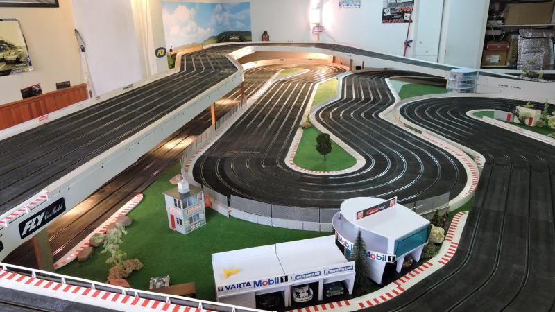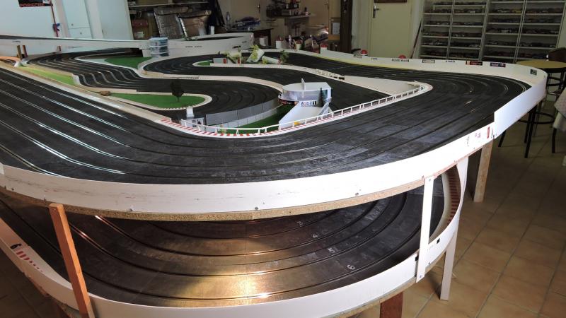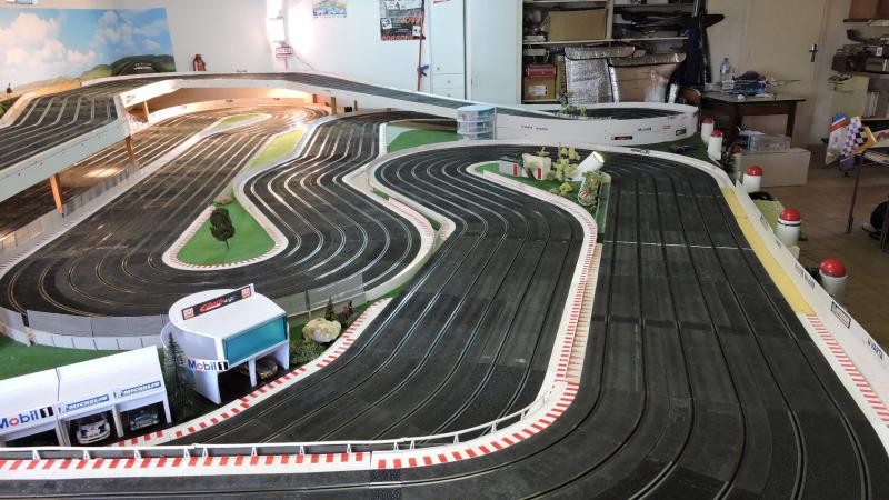 Petit rappel, piste Ninco en 6 voies, d'environ 43 m, confortablement installée dans mon sous-sol