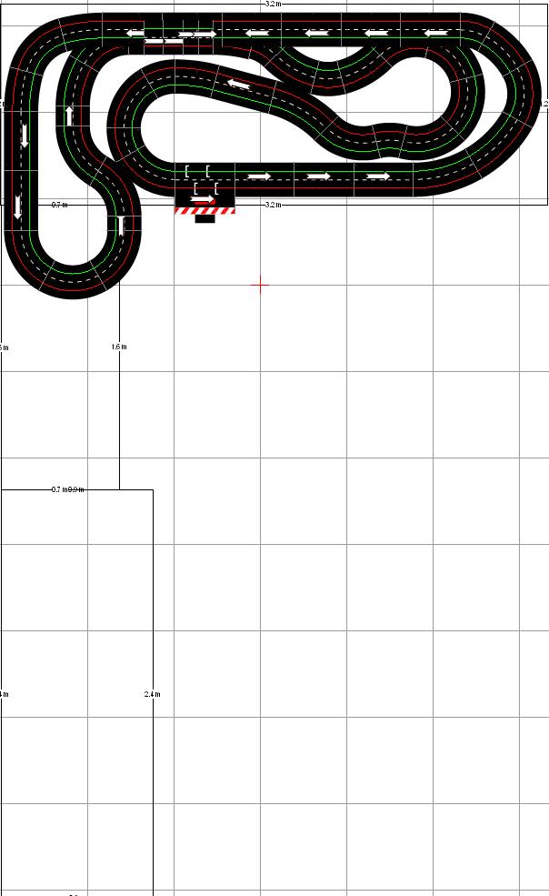 Bonne année à tous. le support dans le garage est pratiquement monté et bientôt le tracé actuel quittera le bureau pour le garage. En même temps j'ai bossé un peu sur le tracé avec l'evolution definitive compte tenu de la place disponible dans le garage avec la voiture.