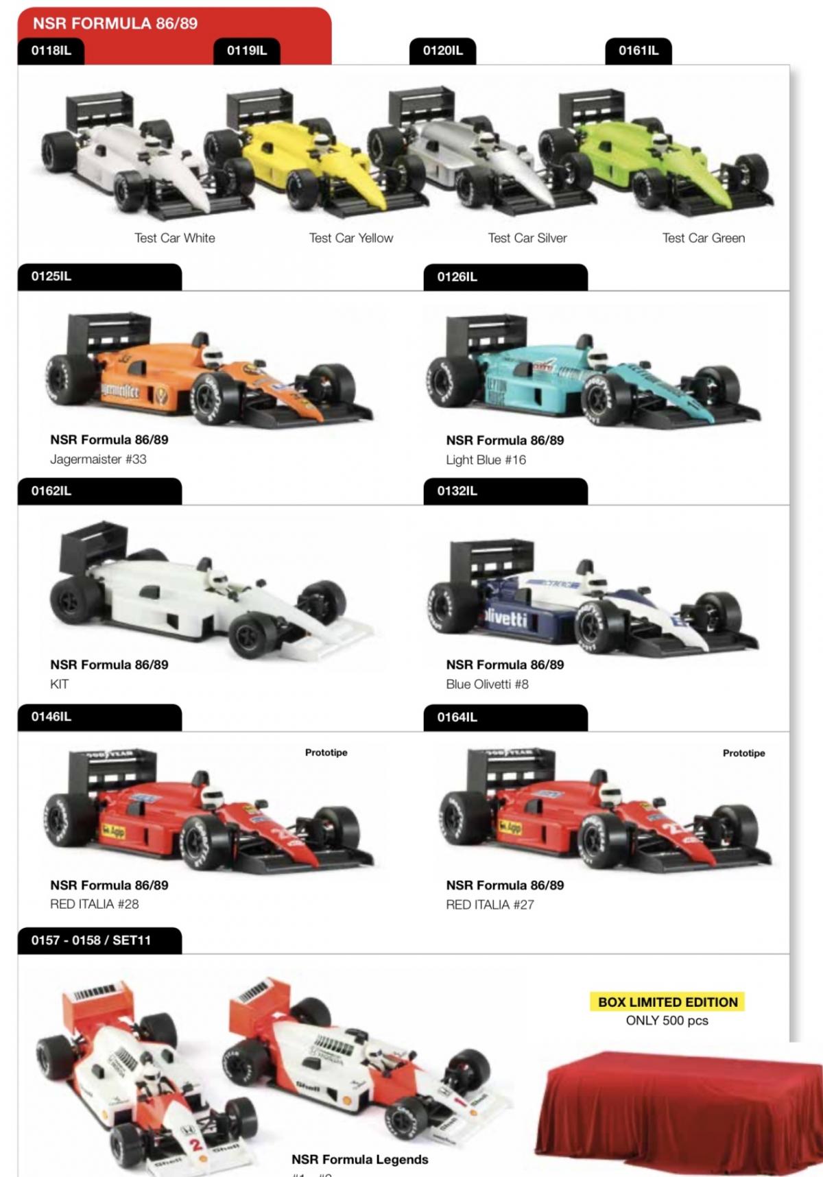 Le catalogue 2020 disponible en ligne sur le site de NSR donne un avant-goût (seuls des prototypes sont montrés) de quelques versions décorées de ces fameuses F1: