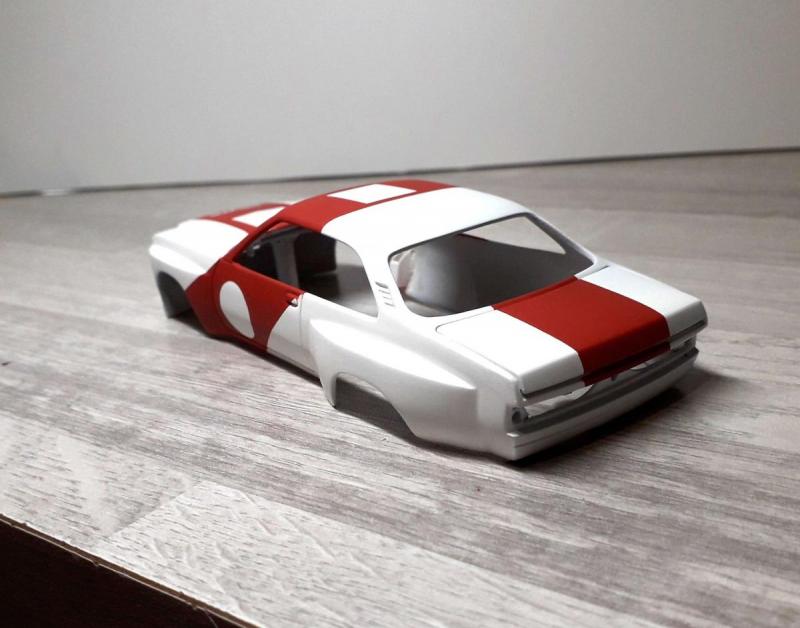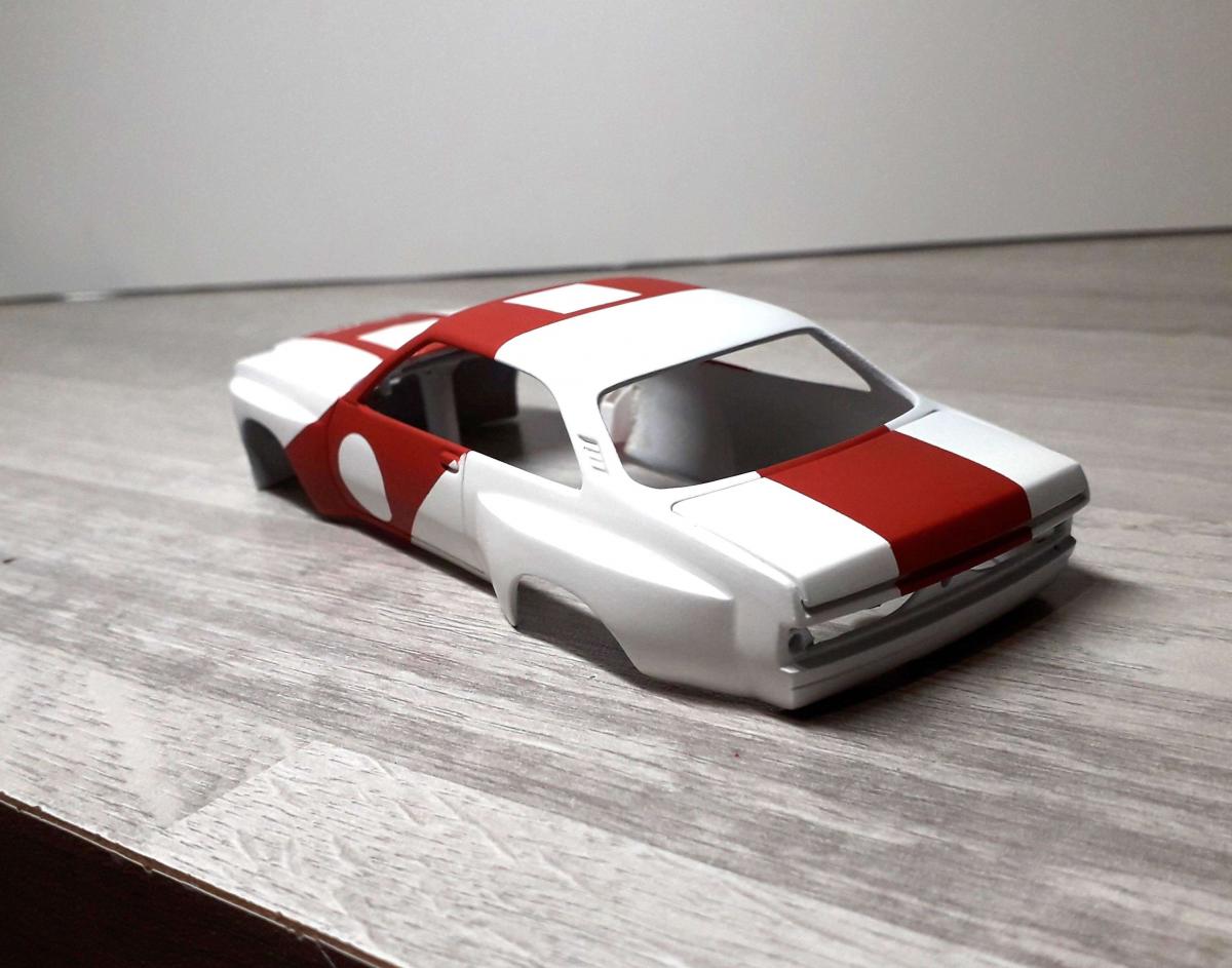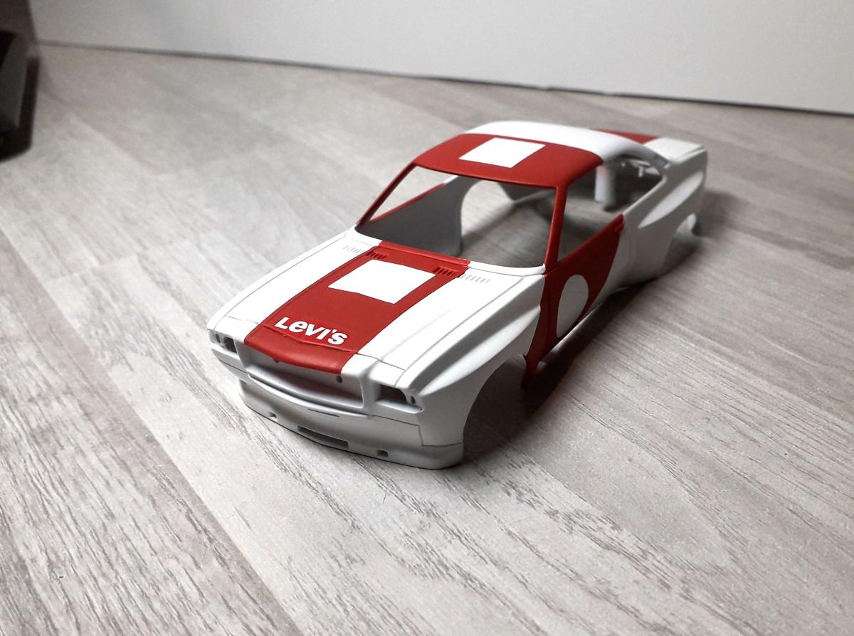 Je me retrouve avec une auto entièrement en peinture matt, le blanc est très costaud, le rouge très fragile. Avant de d'appliquer les decals, je pense appliquer une très légère couche de vernis pour bien fixer le tout, c'est pas encore décider, vous verrez au prochaine épisode. A bientôt.